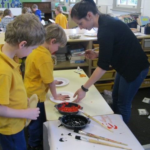 Later in the week, students discussed the meaning of the Aboriginal flag, made an Aboriginal flag handprint and dot painting. Students also enjoyed making and eating Johnny cakes with honey.